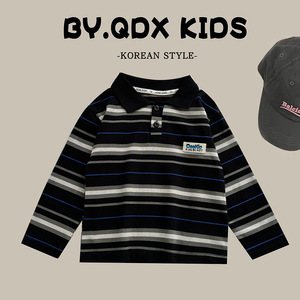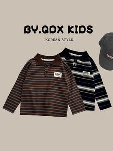 童装老钱风男童A类亲肤条纹POLO衫儿童长袖女童t恤时尚韩版打底衫
