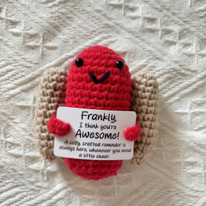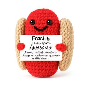 跨境新款成品手工编织正能量热狗玩偶创意毛线积极面包装饰摆件