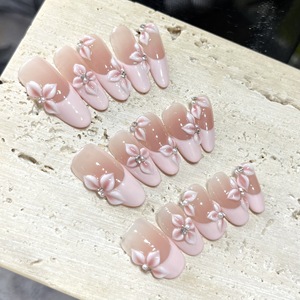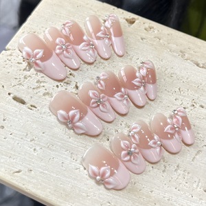 桃花酿纯手工穿戴甲纯欲手雕花皮粉法式腮红高级质感穿戴甲片批发