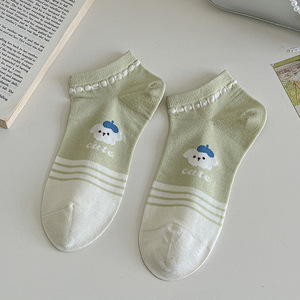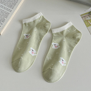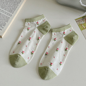 日系碎花系棉袜女生短筒春夏田园风森系吸汗无骨舒适透气百搭船袜