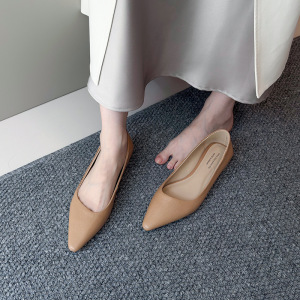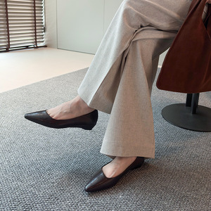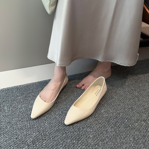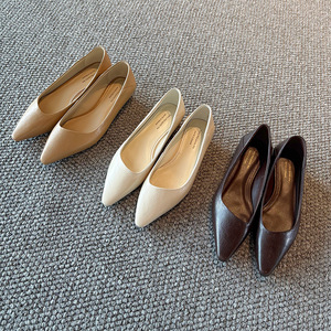 里外全羊皮简约冷淡风2025秋季粗低跟秀气尖头真皮通勤浅口单鞋女