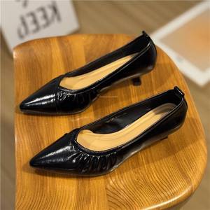 香港时尚尖头高跟鞋女2025夏新款名媛气质浅口单鞋百搭通勤工作鞋
