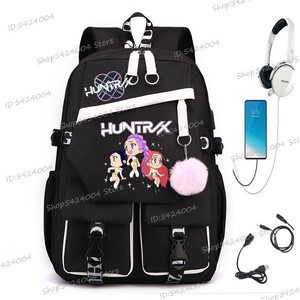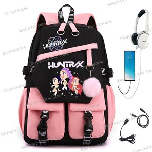 kpop猎魔女团电影周边印花双肩背包书包学生校园带毛球背包