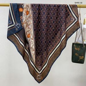 新款双面数码印花90方巾丝毛质感丝巾双面头巾保暖亲肤女装饰围巾