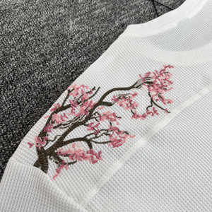 2025新款欧美derschutze blossom 刺绣樱花华夫格男女情侣长袖潮