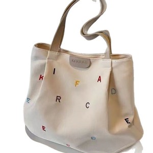 大容量帆布包包女2025新款潮刺绣字母手提袋小清新学生单肩托包