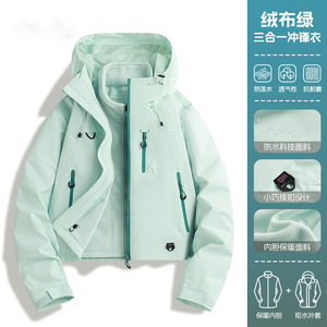 25602女短款-绒布绿【三合一/可拆卸内胆】