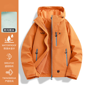 啄木鸟橙色冲锋衣女2025新款户外三合一小个子穿搭防风防晒薄外套