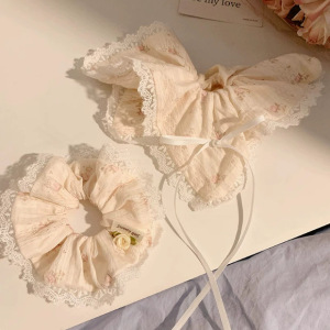 海棠春色~粉色碎花蝴蝶结蕾丝方巾大肠发圈女韩系大号头绳发饰夏