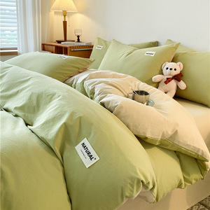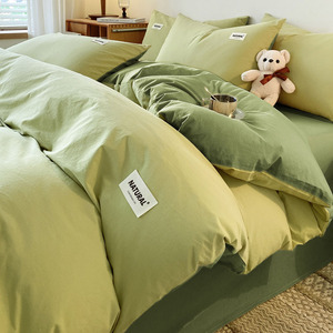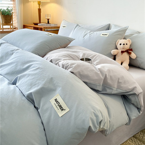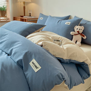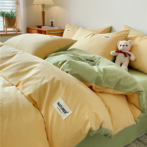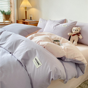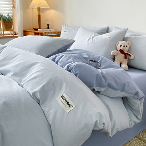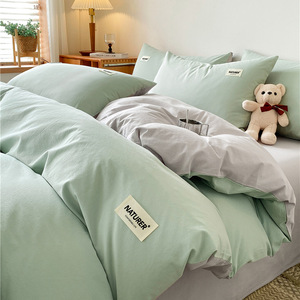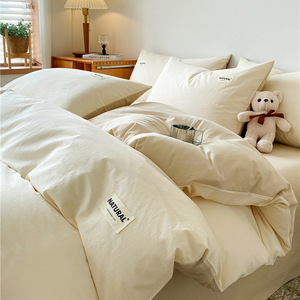简约纯色全棉家用卧室四件套被套单件全棉被罩学生宿舍单人三件套