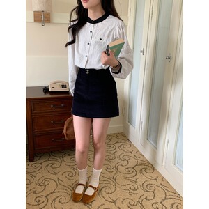 3th Morning 早秋新款 撞色拼接圆领百搭条纹长袖衬衫ZY3232