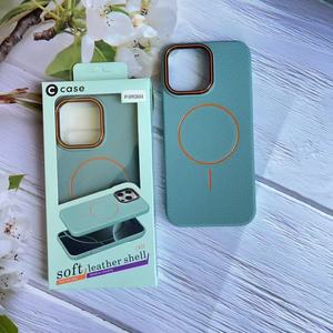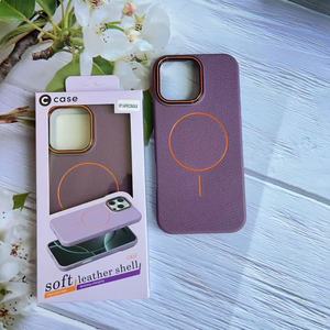 适用iPhone16ProMax手机壳荔枝纹撞色细圈磁吸苹果15防摔保护套14