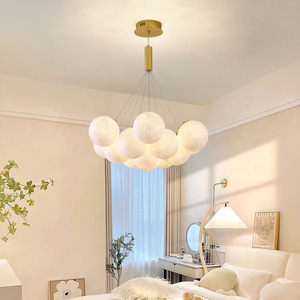 星球灯泡泡球吊灯月球客厅灯氛围魔豆玻璃法式奶油风轻奢卧室灯具
