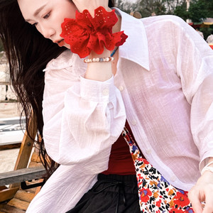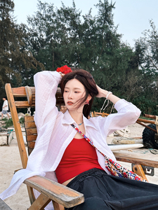 港风复古白色条纹衬衫女夏季设计感小众衬衣气质海边度假防晒上衣