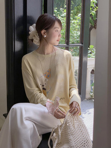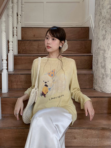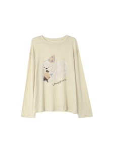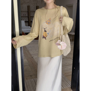 【萌客小狗】歌铭宽松长袖印花T恤女装秋季新款韩系通勤上衣DB022