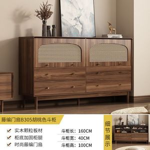 客厅收纳柜斗柜小立柜复古藤编实木腿置物柜卧室靠墙储物柜抽屉柜