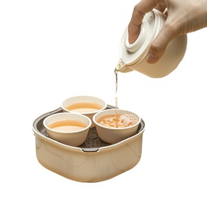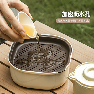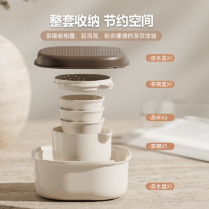茶盘收纳一体旅行茶具便携式套装三杯一壶茶壶旅游露营户外泡茶杯