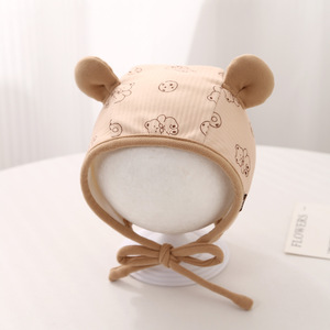新款婴儿包头帽可爱小熊男童女童胎帽春秋季韩版洋气宝宝护耳帽冬