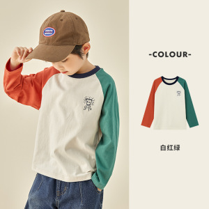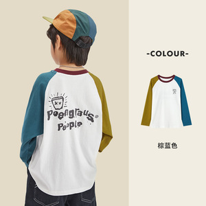 多多家男童装春款2025纯棉趣味涂鸦长袖打底儿童时尚上衣插肩袖T
