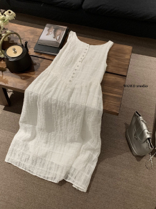WGWE 法式茶歇时髦百搭减龄气质温柔高级感雪纺无袖连衣裙夏W6663