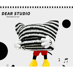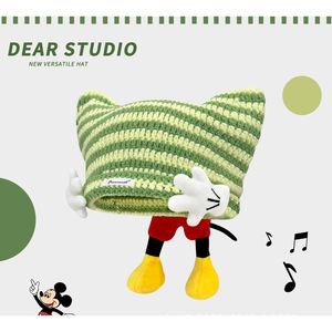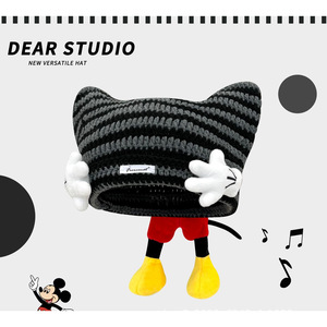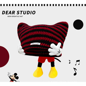 亚比风2025新款手工可爱米奇屁屁手掌条纹套头帽子女针织毛线帽潮