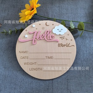 亚马逊热销 hello world婴儿出生纪念牌欢迎新生儿摄影道具月份牌
