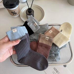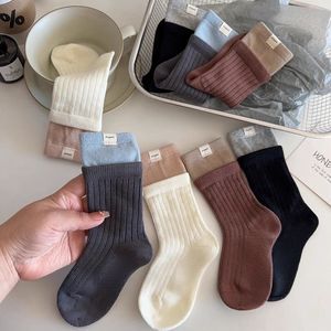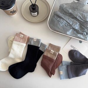 儿童袜子秋冬新款双罗口袜子ins风可扎秋裤男女童潮中高筒棉袜子