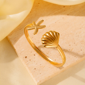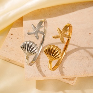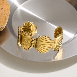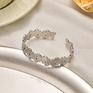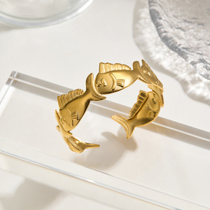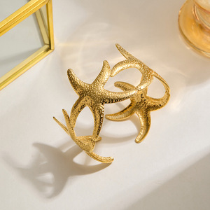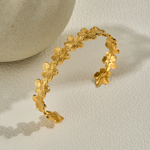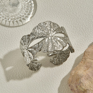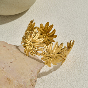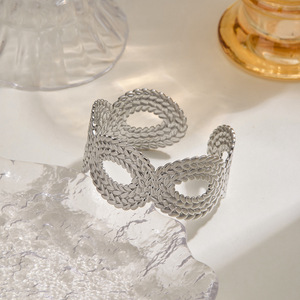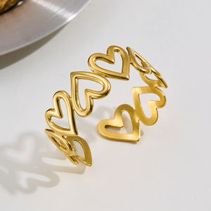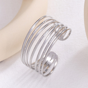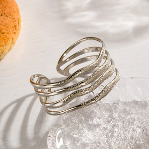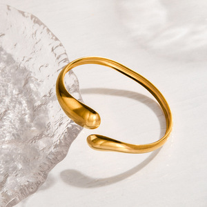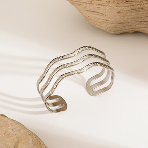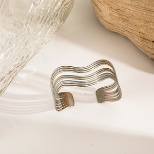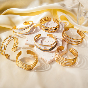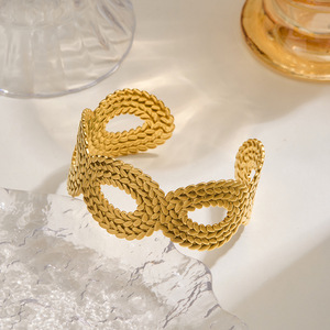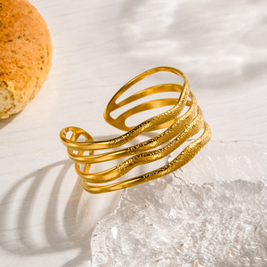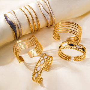 欧美时尚不锈钢滴油开口手镯女轻奢高级感复古多层金宽面钛钢手环