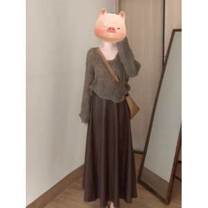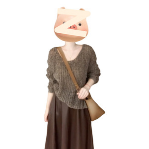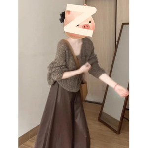 慵懒风早秋穿搭咖色薄款长袖针织衫毛衣韩系早秋小个子穿搭上衣女