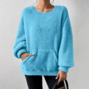2025欧美跨境亚马逊速卖通爆款秋冬休闲时尚纯色圆领长袖毛毛绒卫