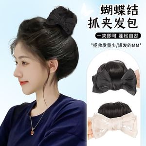 假发女抓夹丸子头新款蝴蝶结盘发神器增发量蓬松高颅顶花苞头发饰