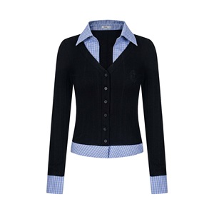 195美式辣妹高级感女潮长袖毛衣显瘦假两件设计简约开衫针织衫