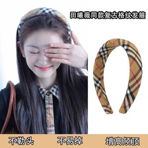 2025新款韩版复古风字母格纹高颅顶洗脸头箍法式简约百搭海绵发箍