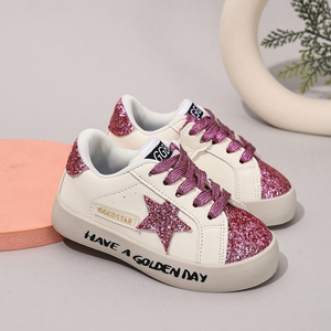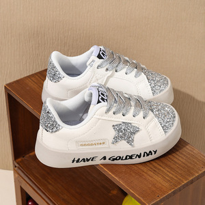 女童鞋板鞋2025秋季新款小女孩软底休闲鞋时尚亮片星星小白鞋防滑