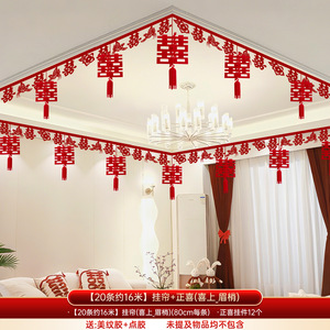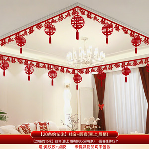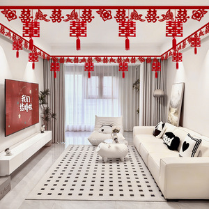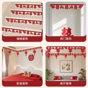 婚房布置套装客厅房顶装饰结婚礼新房男女方卧室楼梯喜字吊顶拉花