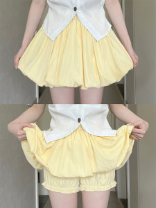 黄色花苞裙裤女夏季2025新款薄款高腰休闲蓬蓬短裤a字阔腿灯笼裤