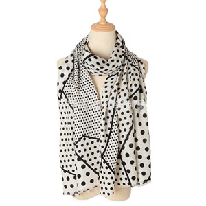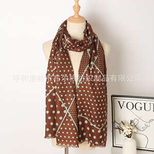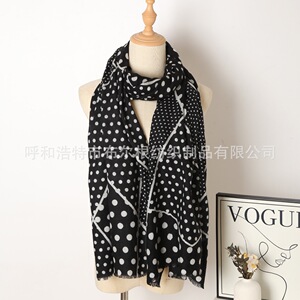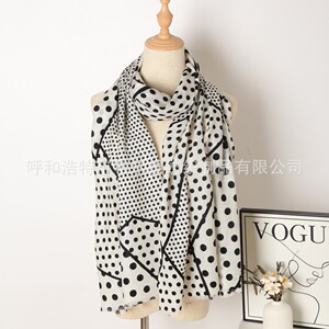 2025秋冬新款印花长巾波点图形纯羊毛轻薄舒适面料围巾保暖