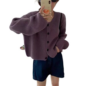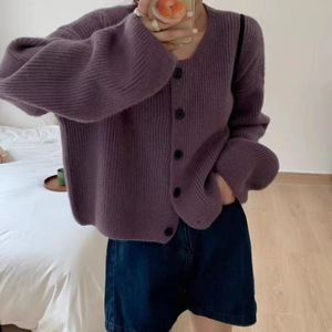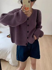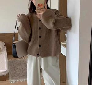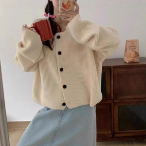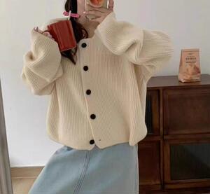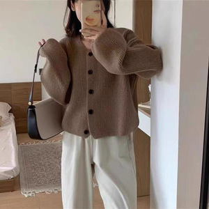 秋冬新款毛衣简约休闲百搭气质针织开衫韩版宽松慵懒外套上衣女
