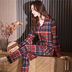 5A抗菌春秋季睡衣女士可爱翻领家居服纯棉开衫长袖加大码全棉套装