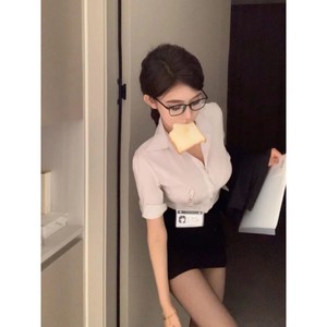 夏季新款收腰显瘦短袖纯欲OL制服套装女职业臀裙衬衫辣妹上衣