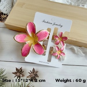 跨境新品浪漫花朵发夹高级感波西米亚风鸡蛋花抓夹后脑勺马尾抓夹