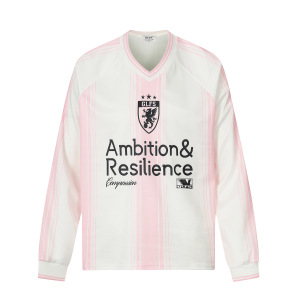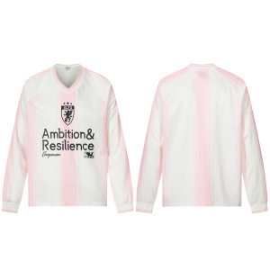 美式复古撞色条纹印花V领球服长袖T恤男女2025秋季宽松休闲上衣