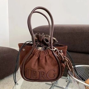 泰国merge 新款小号麂皮字母慵懒托特包通勤百搭通勤手提单肩包包