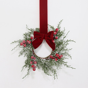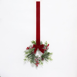 尤加利松柏红果仿雪红丝绒蝴蝶结挂环