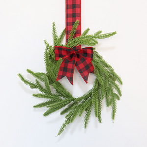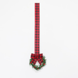 尤加利松柏红果仿雪红黑格子蝴蝶结挂环