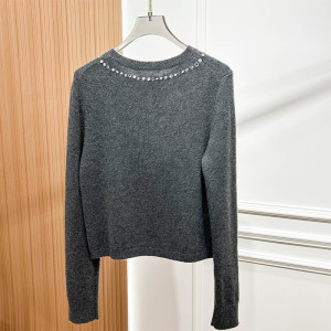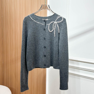 上身超美款 南油2025秋季新款灰色亮钻长袖开衫蝴蝶结针织上衣女