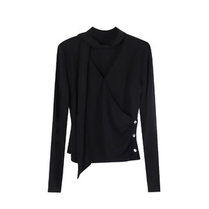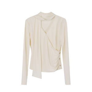 爱西里2025秋气质高级感v领交叉褶皱设计飘带针织衫长袖上衣15280
