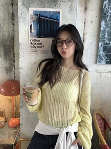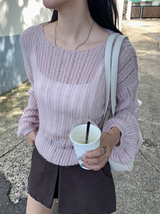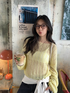 广州黄峥秋韩系慵懒风穿搭镂空防晒罩衫女宽松外搭针织上衣530049
