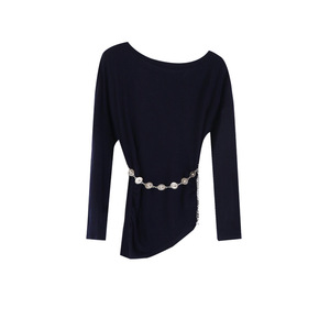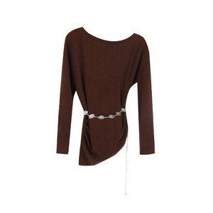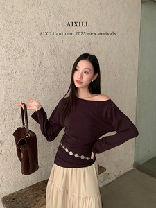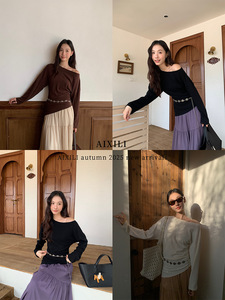 爱西里2025秋简约风高级斜肩不规则下摆设计褶皱显瘦针织衫15292
