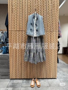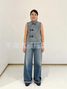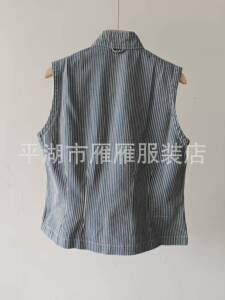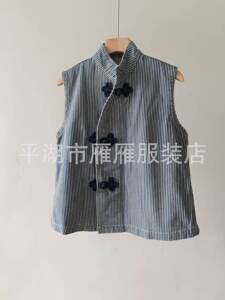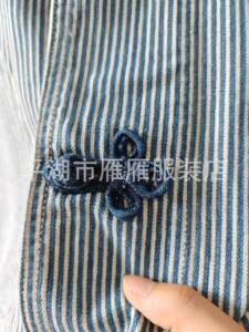 45*r 新品柜子爆款!全棉黑麦牛仔三叶草结饰马甲盘扣新中式衬衫